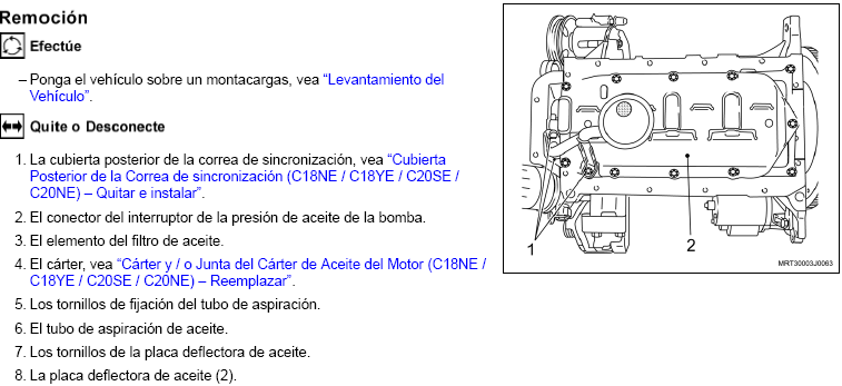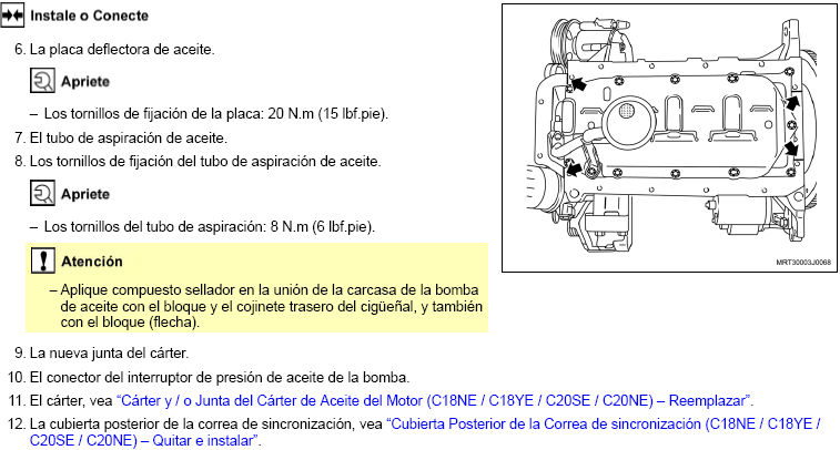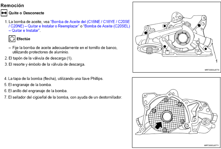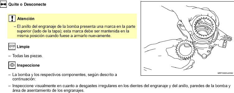 • Malla de la bomba de aceite está floja, bloqueada o dañada.