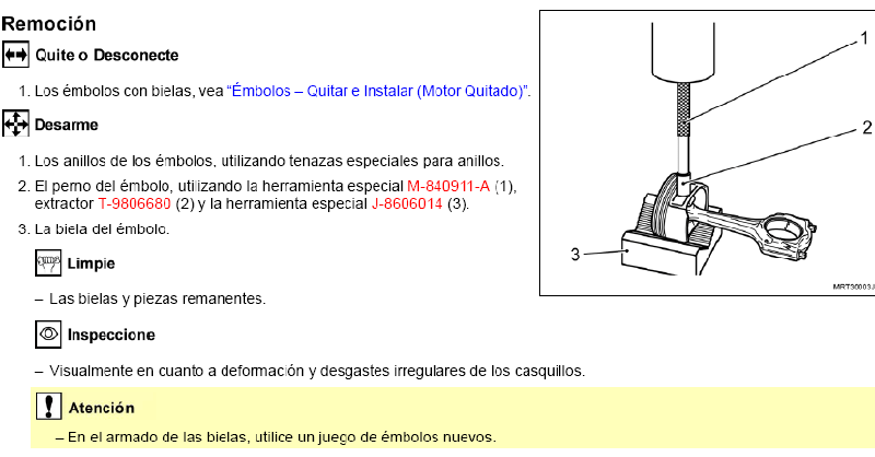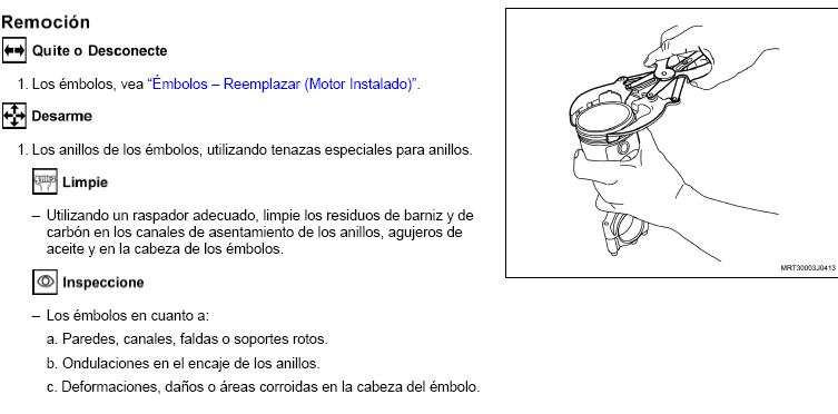 • Inspeccione el cigüeñal • Repare o reemplace los componentes dañados