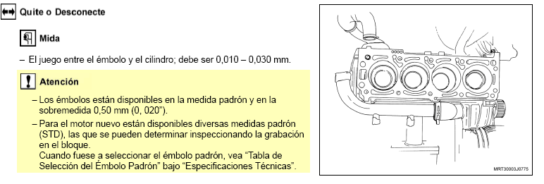 • Fuga: la compresión es baja en la primera carrera de compresión. La compresión aumenta con las carreras siguientes, pero no llega a la compresión especificada.