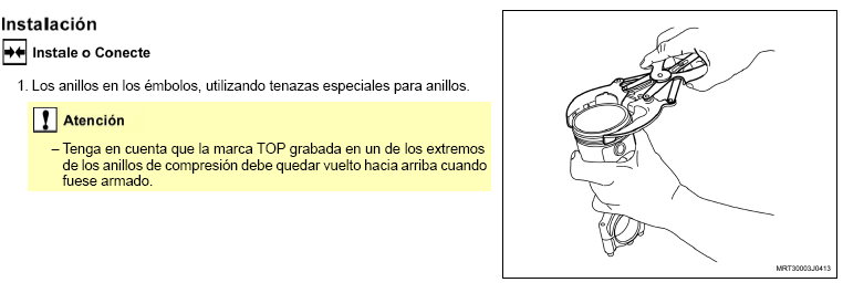 • Fugas de los Anillos de Pistón: compresión es baja en la primera carrera de compresión. La compresión aumenta en las siguientes carreras, pero no llega a ser normal. La compresión mejora considerablemente al agregar aceite