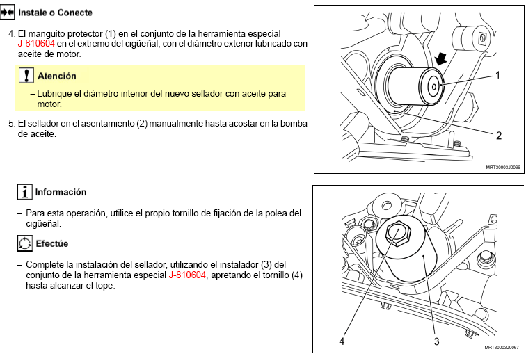 • Tapas de las galerías de aceite del bloque del motor que están faltando o instalado incorrectamente.