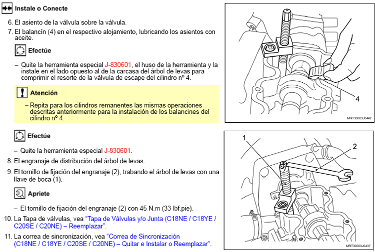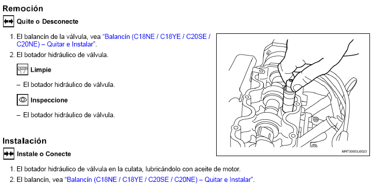 • Inspeccione los levantadores de válvula • Repare o reemplace los componentes dañados