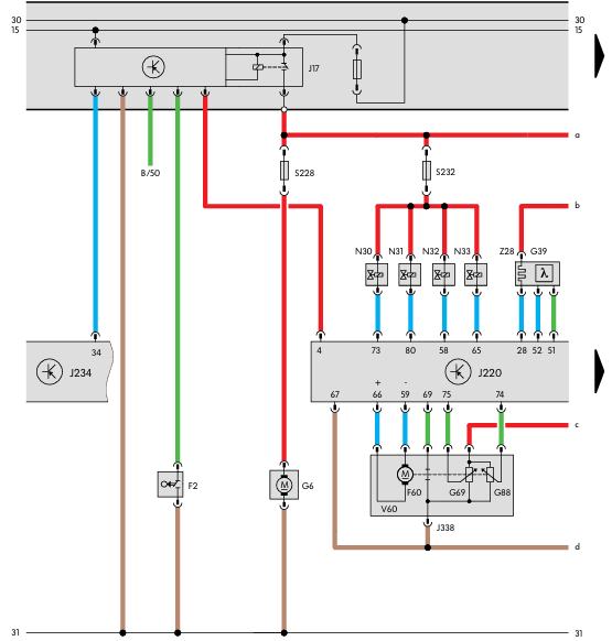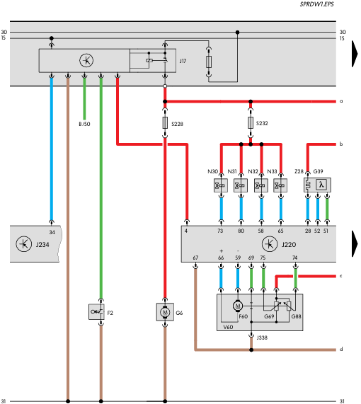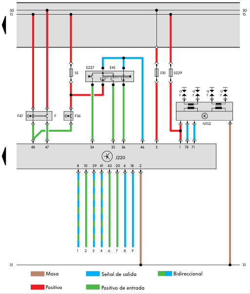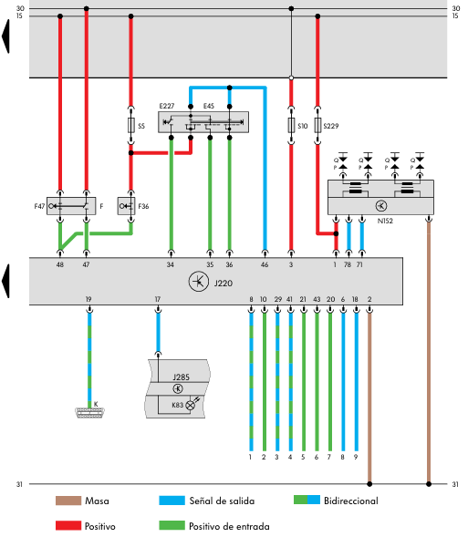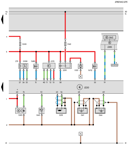 - Sensores de picado G61 y G66- Conmutador de luz de freno F y conmutador de pedal de freno F47
