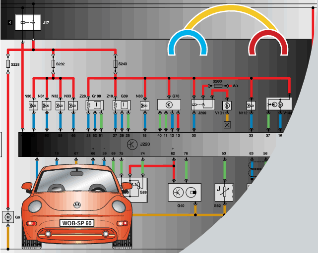 - Bomba de combustible G6 y relé de bomba de combustible J17