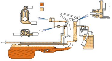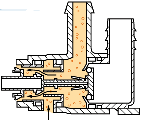 La geometría del manguito de llenado genera adicionalmente un Òefecto VenturiÒ en la pistola del surtidor (efecto eyector), y retiene así el vapor del combustible en el depósito. Al abrir la chapaleta de repostaje gira solidariamente un disco de leva, encargado de accionar mecánicamente la válvula de desaireación.