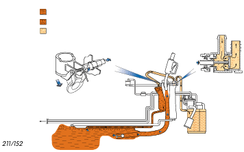 Estando el vehículo en circulación, todos los vapores de combustible pasan a través de la válvula de cierre por vuelco y de la válvula presostato.