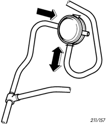 La válvula de una vía va instalada con una pieza en T, en el tubo de desaireación ante la electroválvula para el depósito de carbón activo, en la torreta derecha de la suspensión. Lleva una caperuza de protección, que facilita la localización del empalme para comprobar la presión del combustible.