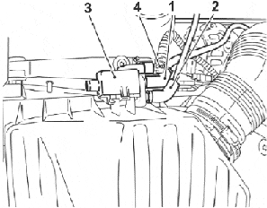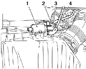 - Las mangueras (3 y 4) del sistema del canister de carbón