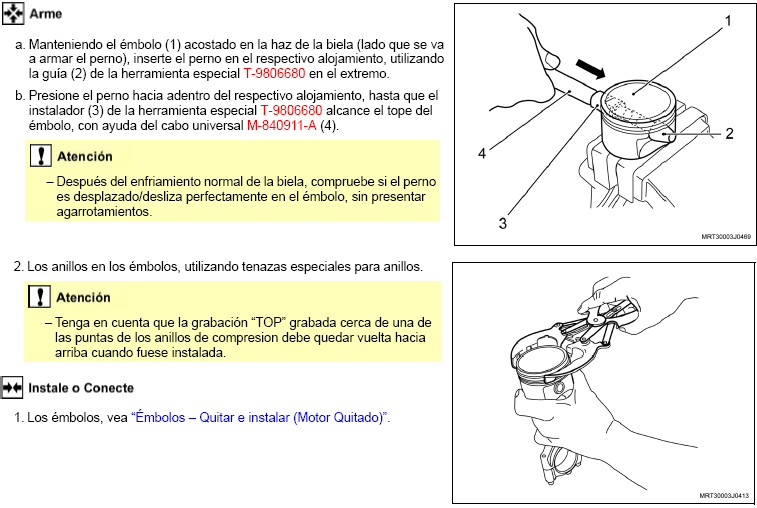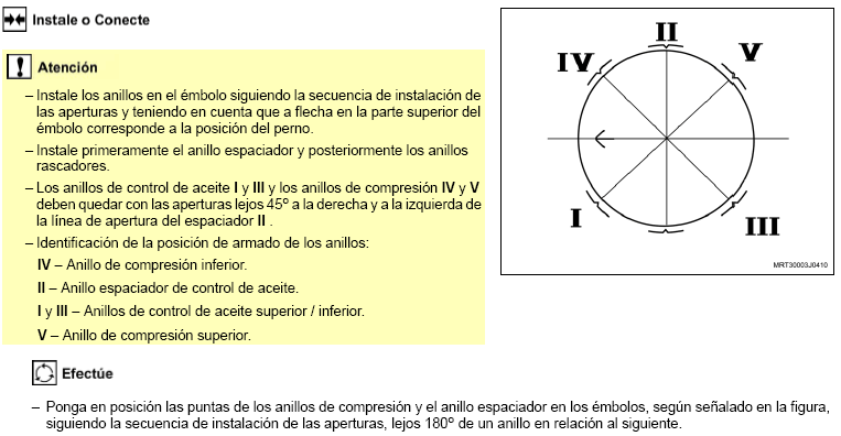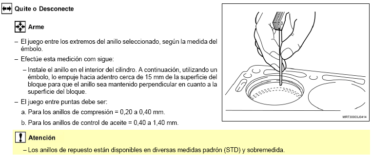 • Fugas de los Anillos de Pistón: compresión es baja en la primera carrera de compresión. La compresión aumenta en las siguientes carreras, pero no llega a ser normal. La compresión mejora considerablemente al agregar aceite