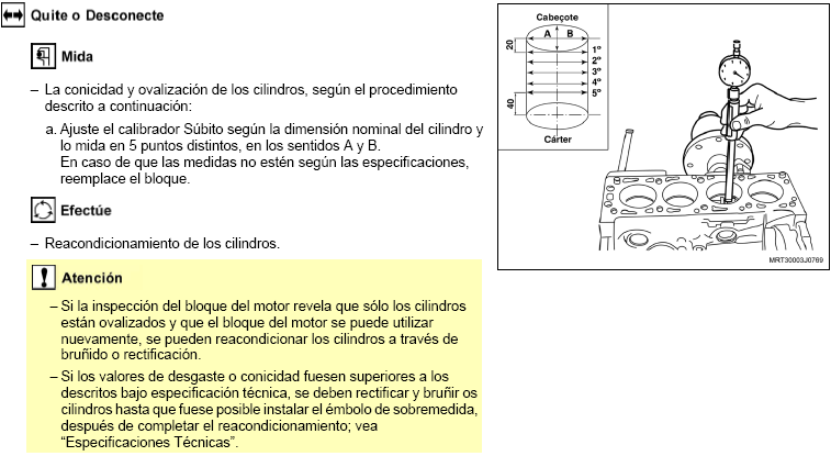 Importante: motor a temperatura de funcionamiento, temperatura de aceite >/= 80°C (176°F). Use el grabador de compresión con el cono de hule y rango hasta 1750 kPa (255 PSI).