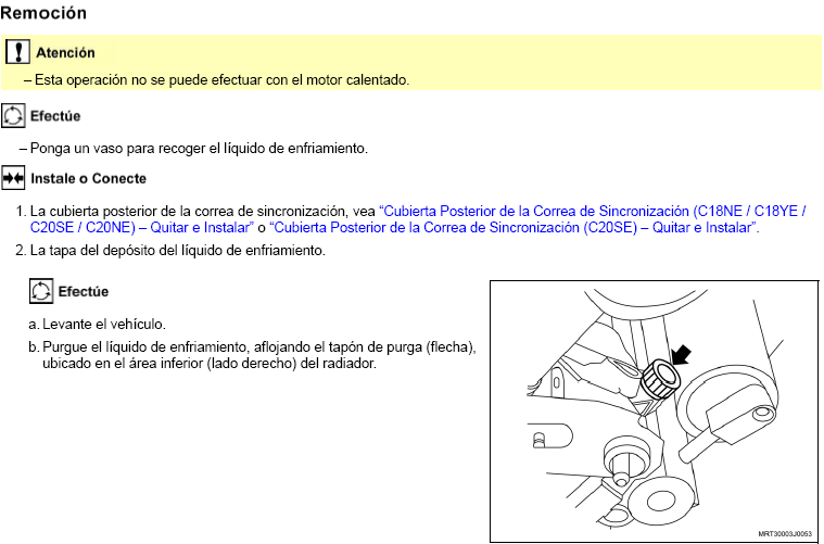 6. Encienda el motor y permita que llegue a la temperatura de funcionamiento normal.