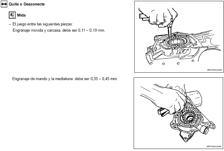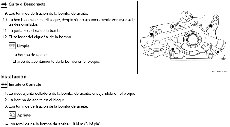 • Malla de la bomba de aceite está floja, bloqueada o dañada.